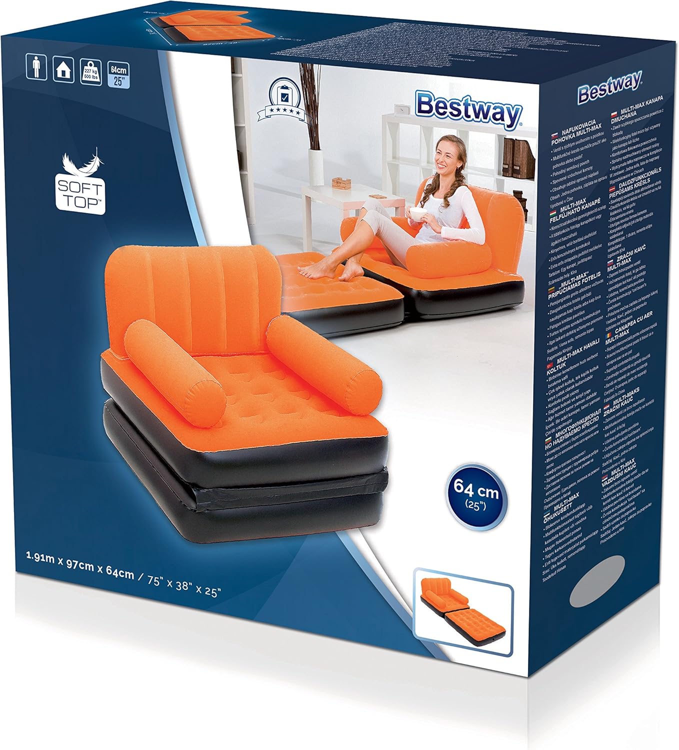 Bestway Multi Max Flocked Inflatable Arm Chair 191 X 97 X 63 Cm Amazon Co Uk Sports Outdoors