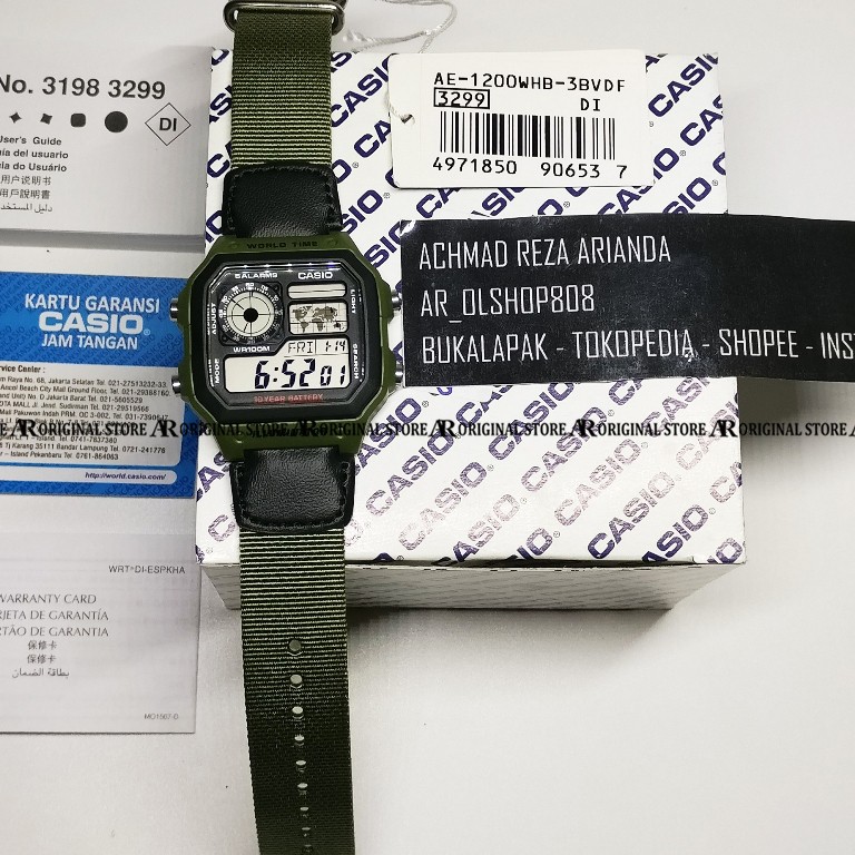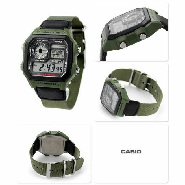 Casio Original Ae 1200whb 3b Ae1200whb 3b Jam Tangan Pria Digital Canvas Hijau Army Shopee Indonesia