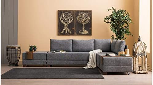 Evdebiz Fly Yatakli Sol Kose Koltuk 2 Adet Kol Sehpasi Hediyeli Gri Evidea
