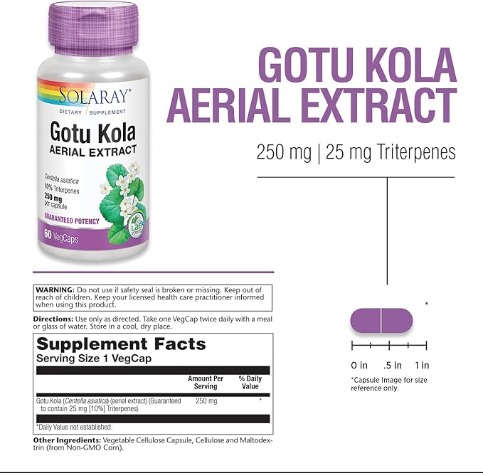 Amazon Com Solaray Gotu Kola Aerial Extract 250 Mg Healthy Blood Vessel Circulation Mental Clarity Mood Support 60 Vegcaps Health Personal Care