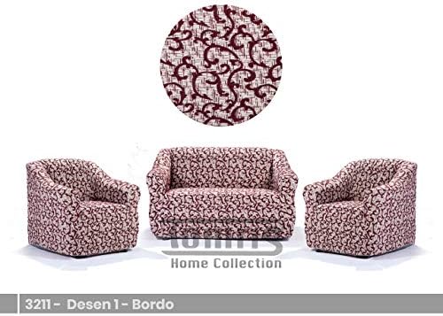Elastik Likrali 3 2 1 1 Tomris Pratik Koltuk Ortusu Takimi Desen 1 Bordo Amazon Com Tr