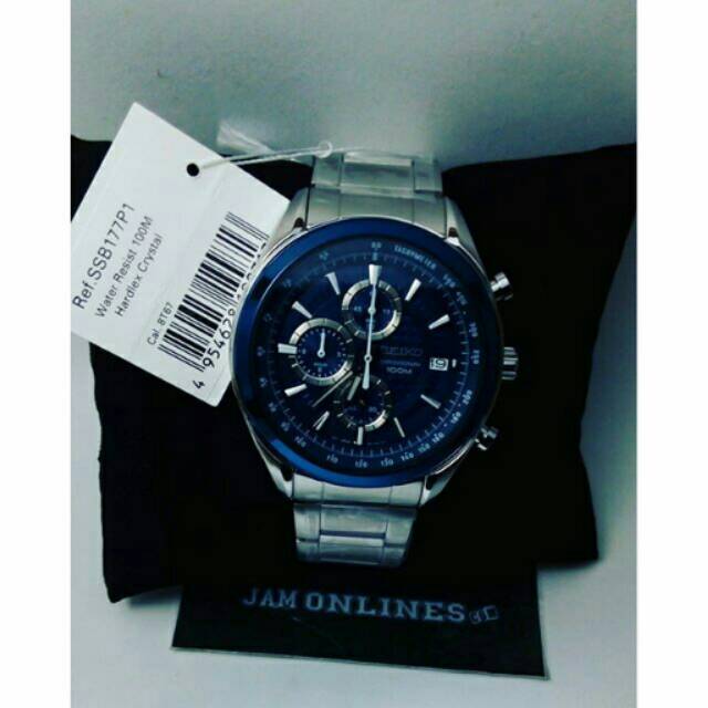 Seiko Men Chronograph Ssb177p1 Blue Dial Silver Hands Stainless Ssb177 Jam Cowok Shopee Indonesia